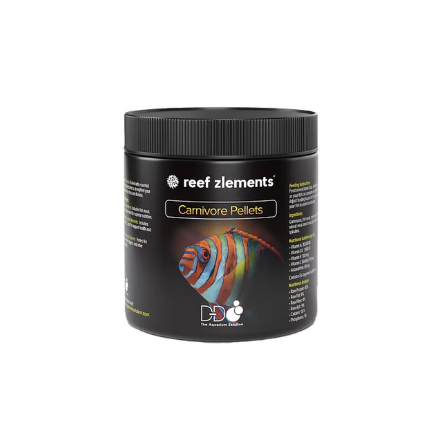 Reef Zlements Carnivore Pellets 200G provide a protein-rich, nutrient-packed diet specifically designed for carnivorous marine fish. These pellets promote growth, vibrant coloration, and strong immunity, while helping to keep your aquarium water clear. Perfect for groupers, lionfish, triggers, and other carnivorous species, available at Reef Freaks for your aquarium needs.